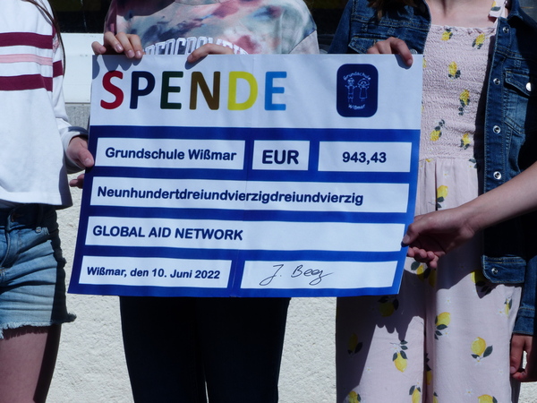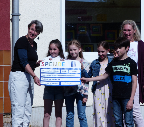 Endlich war es soweit: Die Klassensprecher der 4. Klassen haben den Spendenscheck symbolisch an Frau Lossnitzer von der Organisation GAIN übergeben. Mit dem gesammelten Geld wird den Menschen in der Ukraine geholfen, die unter dem Krieg leiden.