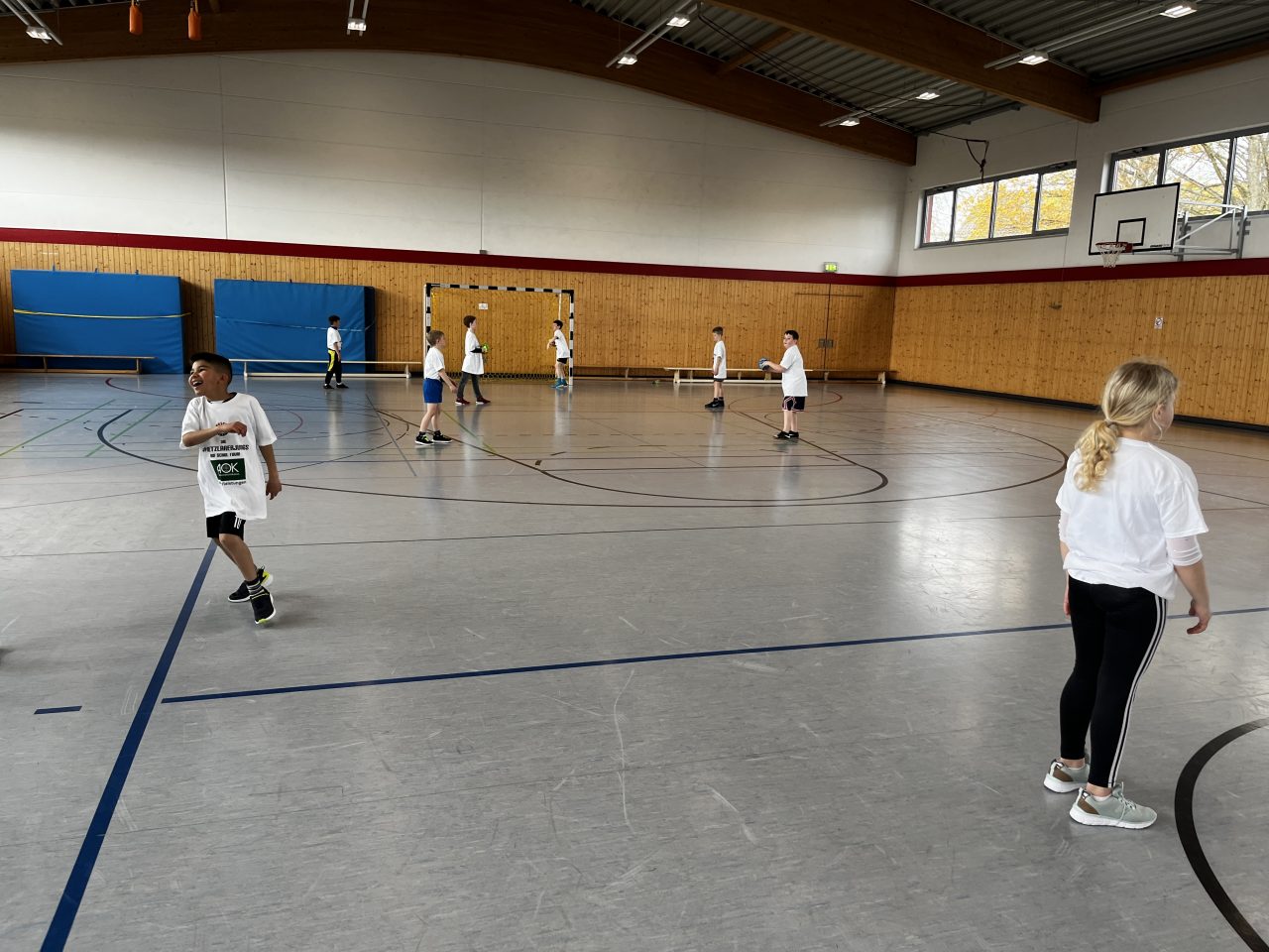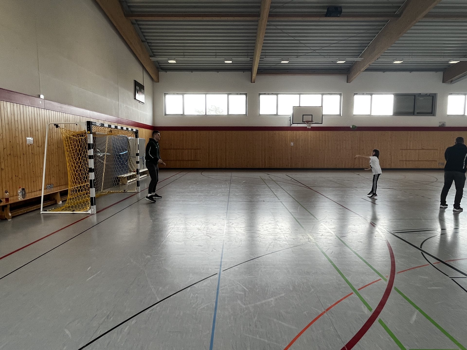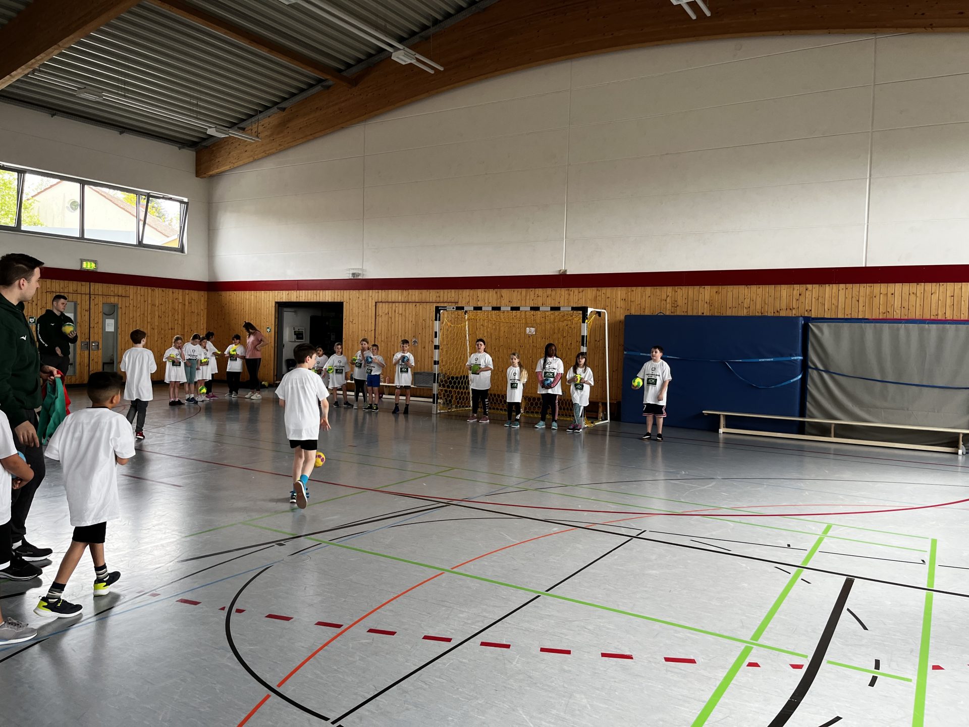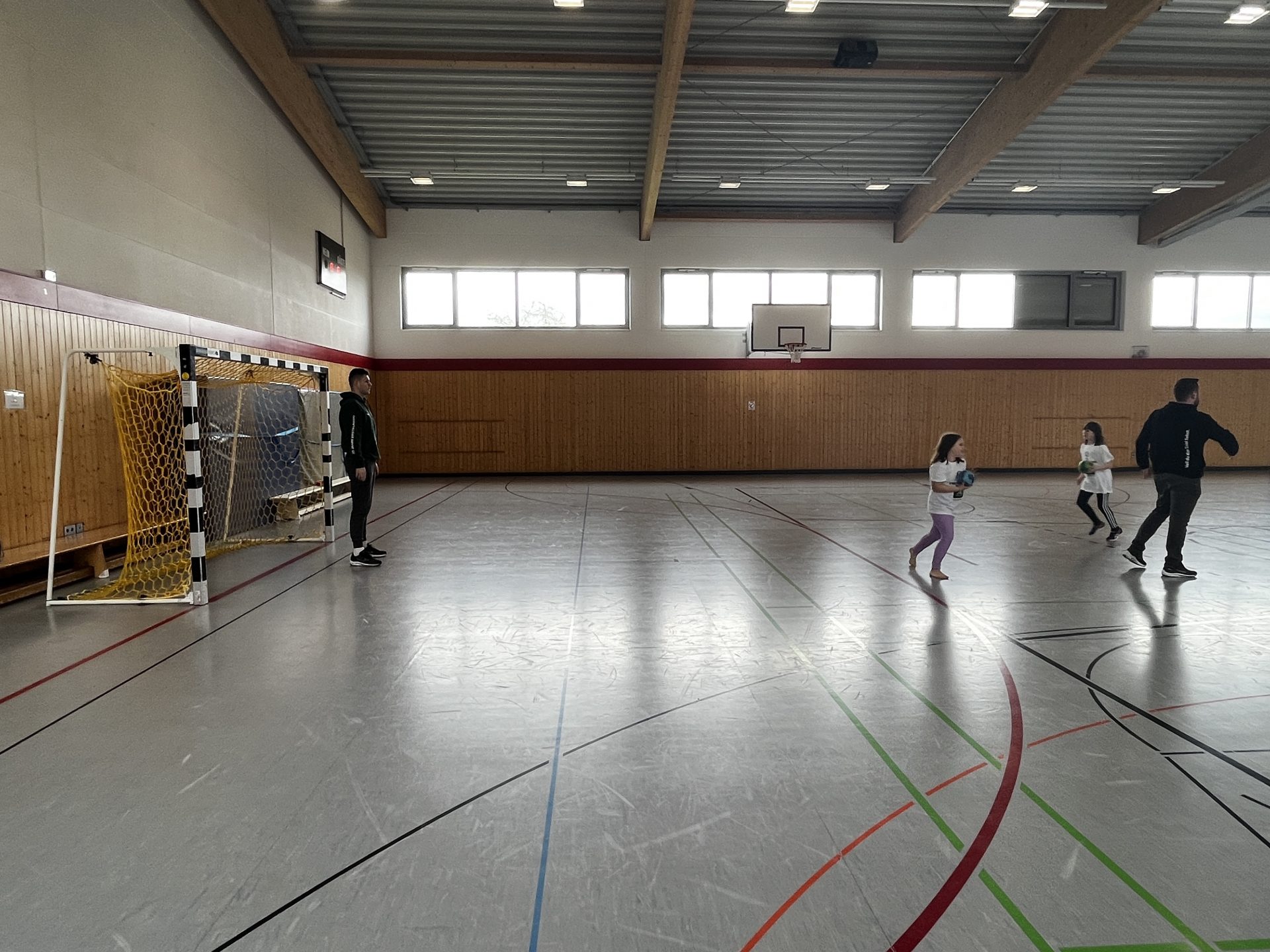 Nach der Trinkpause haben wir auf die Tore geworfen. Meistens haben wir nicht getroffen. Der Torwart war richtig gut. Aber manche haben auch mal getroffen. Am Ende haben wir noch eine Urkunde, eine Freikarte und ein T-Short mit Unterschrift erhalten. Das war eine aufregende Sportstunde aber auch eine schöne.