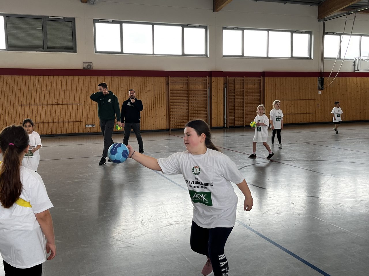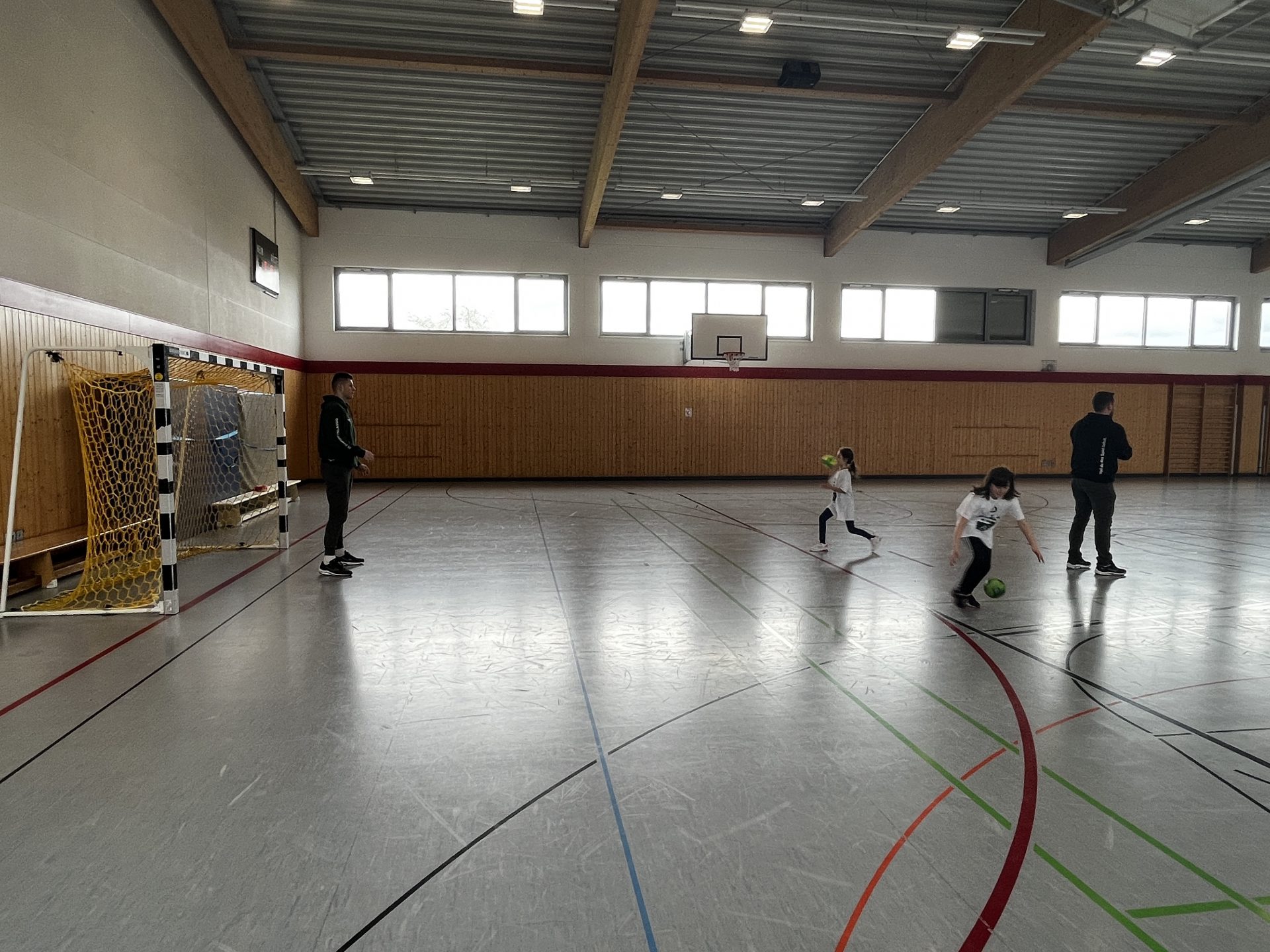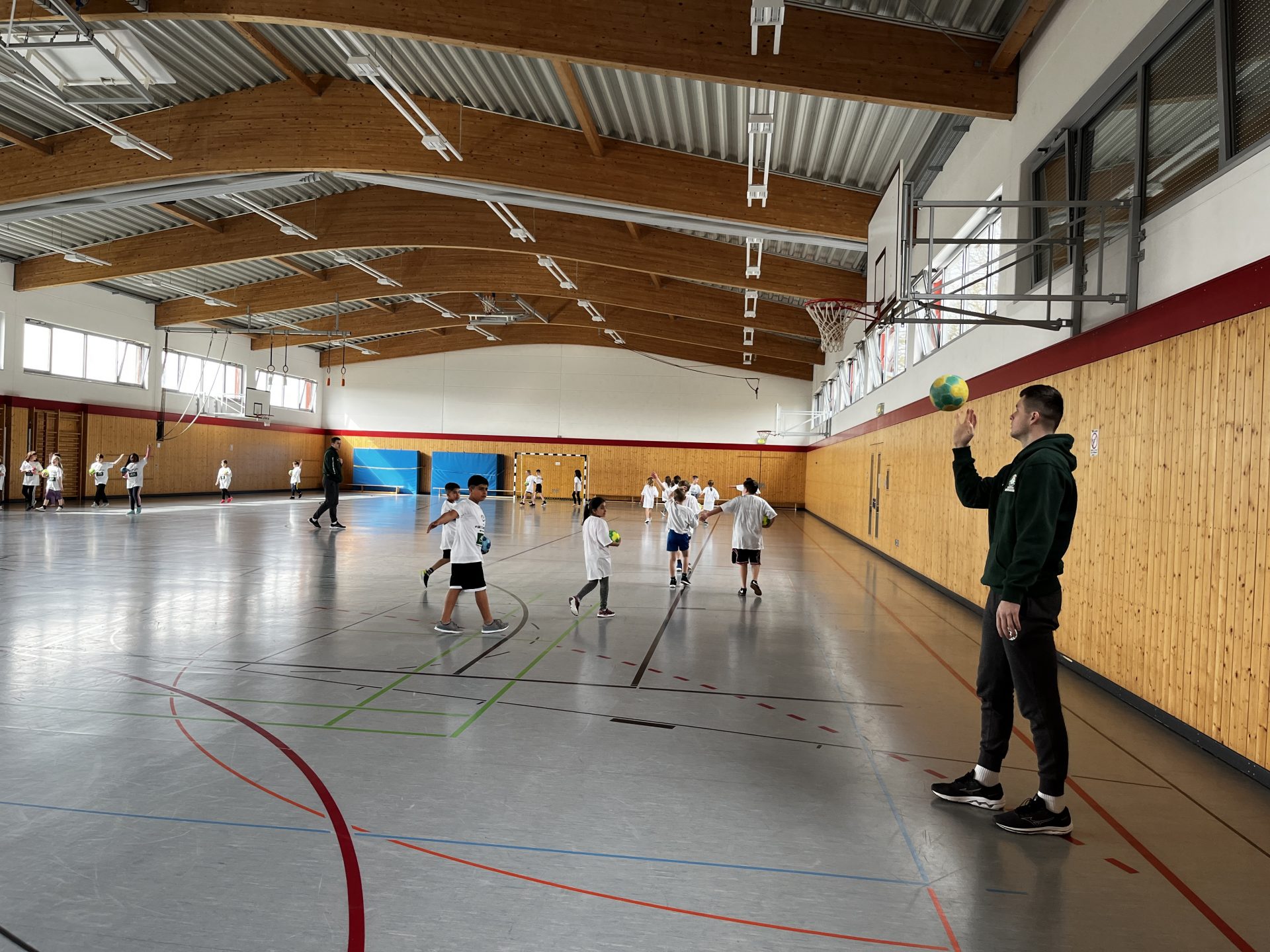 Nach der Trinkpause haben wir auf die Tore geworfen. Meistens haben wir nicht getroffen. Der Torwart war richtig gut. Aber manche haben auch mal getroffen. Am Ende haben wir noch eine Urkunde, eine Freikarte und ein T-Short mit Unterschrift erhalten. Das war eine aufregende Sportstunde aber auch eine schöne.