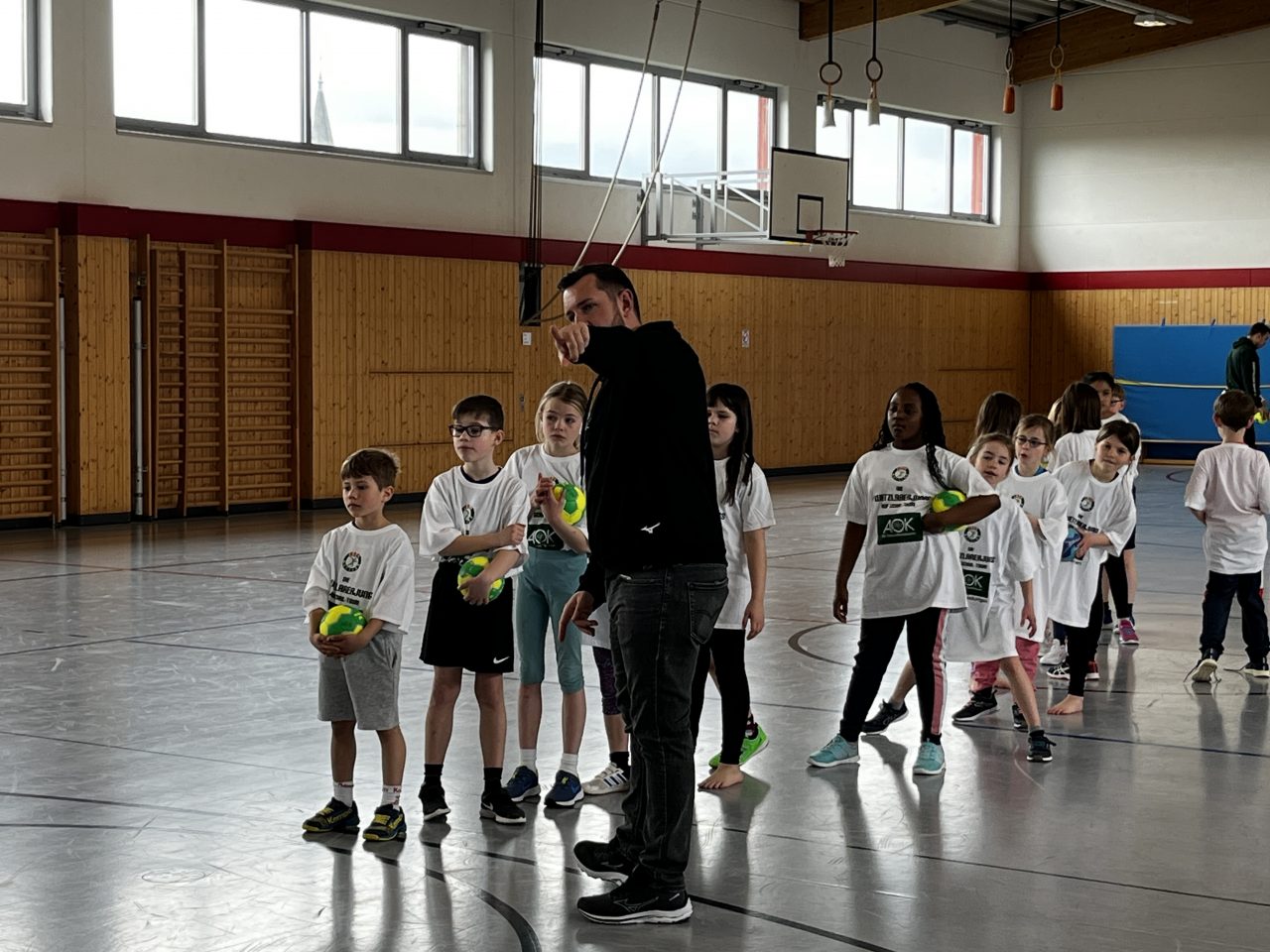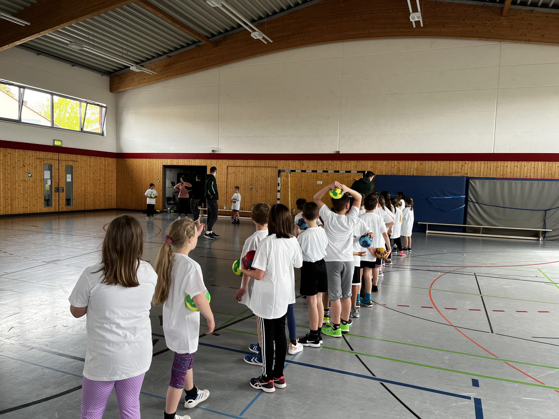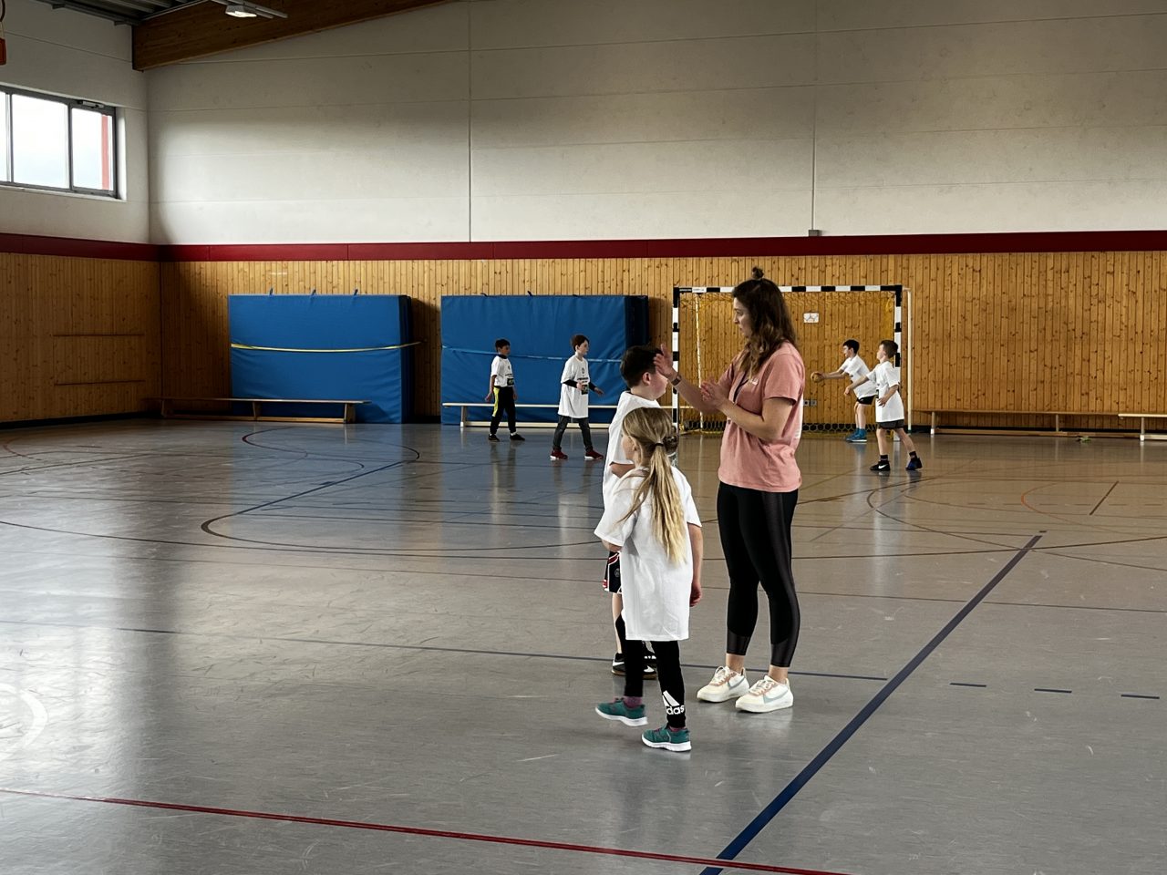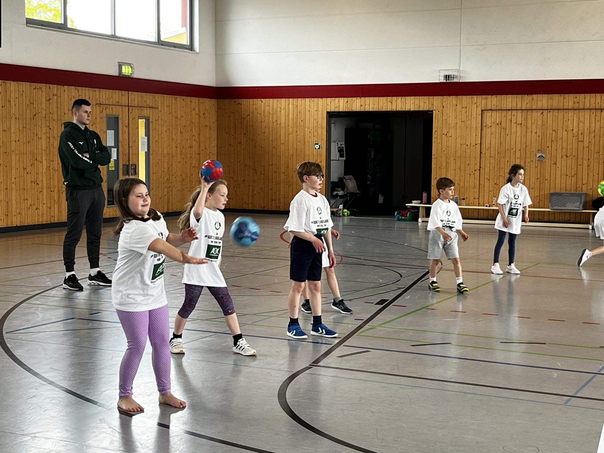 Nach der Trinkpause haben wir auf die Tore geworfen. Meistens haben wir nicht getroffen. Der Torwart war richtig gut. Aber manche haben auch mal getroffen. Am Ende haben wir noch eine Urkunde, eine Freikarte und ein T-Short mit Unterschrift erhalten. Das war eine aufregende Sportstunde aber auch eine schöne.